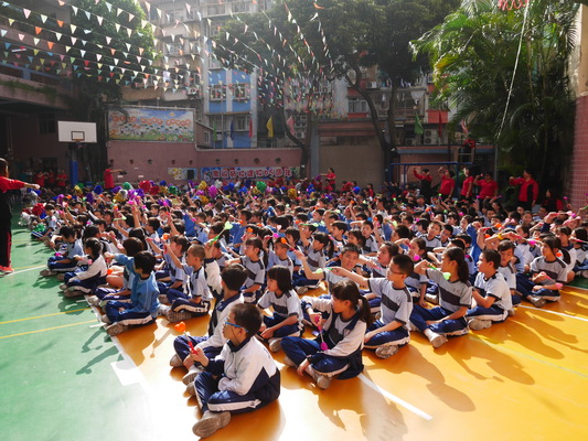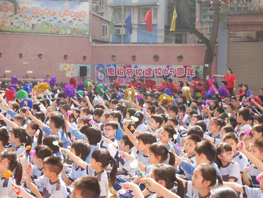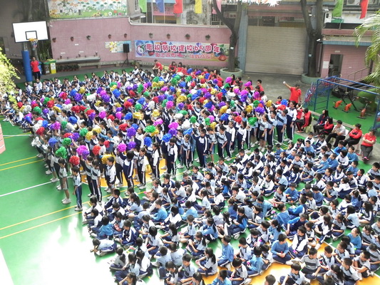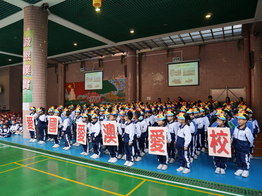 為進一步深化愛國、愛澳、愛校的"三愛"教育,在慶祝建校六十五周年到來之際,本校小學部於十一月十四日上午成功舉行了一場近一千三百名學生參與的"勵志歌曲 伴我成長"大型歌曲聯唱活動。 活動於當日九時開始,歷時一個小時,鄭杰釗校長、邵朝霞副校長、林倫偉副校長和學校家長會的代表出席了這一盛事活動。伴隨著鄭校長熱情洋溢的致詞及莊嚴肅穆、嘹亮有力的國歌聲拉開了演唱的序幕,在一位六年級女生和兩位三年級男生司儀的主持下,活動有序順利進行,現場氣氛熱烈,學生情緒高漲,中場休息學校中樂團的客串表演學生們靜心聆聽,感受《紫竹調》的悠揚、委婉,分享《歡樂牧童》的歡暢歌舞。全場齊唱生日歌將活動推向高潮,也是同學們獻給母校最好的生日禮物。