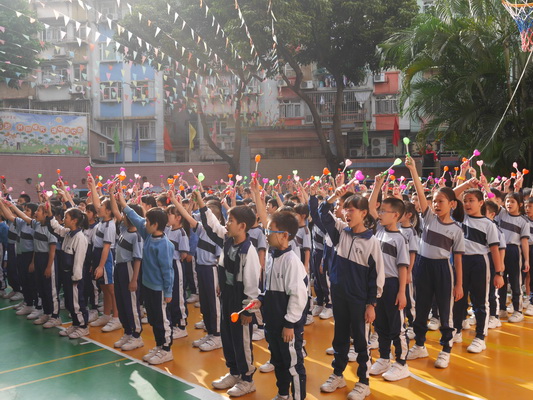 活動現場全校學生以年級為單位,分成六個方陣,每個方陣演唱兩首勵志歌曲。首先開唱的是四年級方陣,《真的愛你》表達了孩子們與父母之間無尚的親情之愛;一年級小朋友演唱的《春天在哪裡》和《世上只有媽媽好》抒發著他們熱愛生活、熱愛大自然的美好情懷;二年級演唱的《七子之歌》把我們帶回了回歸時那歡慶的場面,演唱時同學們揮著手中的澳門區旗,擎著"愛國 愛澳 愛校"的牌匾字樣,隨著音樂舞動,無比陶醉;三年級同學的《賣報歌》演唱整齊、有力,塑造出舊時上海報童的形象;五年級帶來的《光輝歲月》鼓勵著同學們真愛友誼,朋友間互相珍重、鼓勵、勇往直前;六年級的一首《擁抱愛》引發全場學生自發跟唱,抒發著全體學生的無限快樂與真誠!歌曲聯唱伴隨著全場齊唱勞校《校歌》娓娓降幕,但留下了無盡的開心與回味。