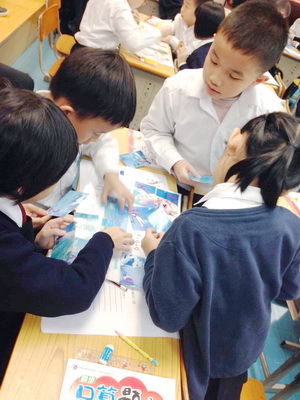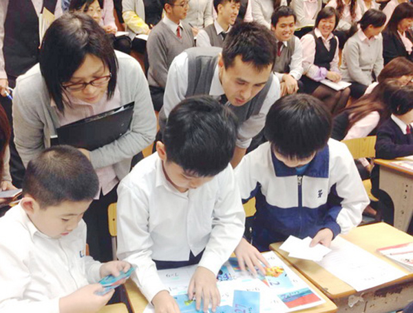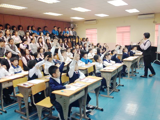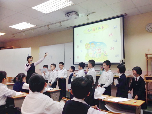 顏老師是我校新入職的教師,教齡只有4個月,但她的課堂設計卻令人讚嘆不已,得到各位教師的好評。在此課堂中,顏老師通過設計"聖誕老人派禮物"的闖關遊戲,讓學生當小小數學家,自行編制出9的乘法口訣。闖關遊戲共分5關,由淺入深,第一關和第二關是乘法的基本概念 ─ 幾個9相加;第三關是編制口訣和發現口訣的規律;第四關是學習"你身上的計算器" ─ 手指法,第五關是小組合作做練習,根據答案,拼出一副美麗的卡通圖案。整個教學流程十分流暢,顏老師能活用教材,創設有效而有趣的活動,讓學生從愉快中學習,取得良好的教學成效。