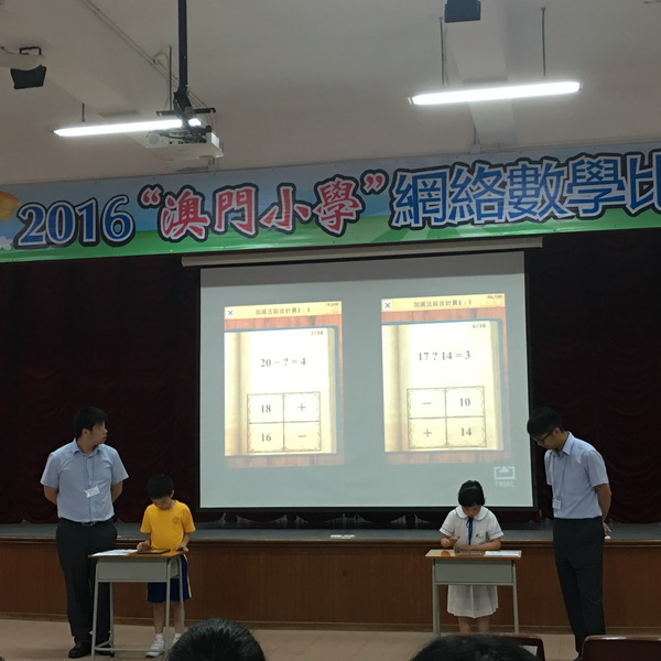 日前,我校參加了由澳門基礎教育科學技術應用協會主辦,澳門數學教育研究學會協辦的"二○一六澳門小學網絡數學比賽"。是次比賽主要透過趣味性的網上數學競賽,以活潑互動的操作介面,培養學生對數學的興趣,提升數學知識實踐能力與水準,希望藉此推動電子學習的成效,提升學生綜合素質。