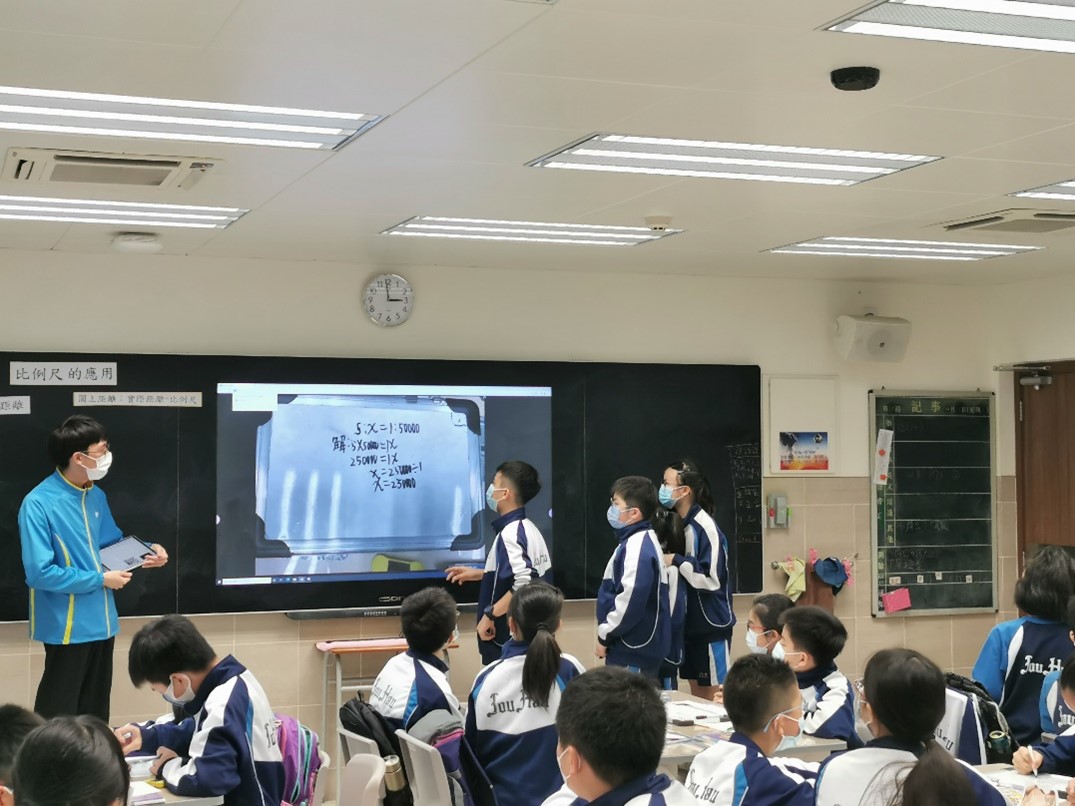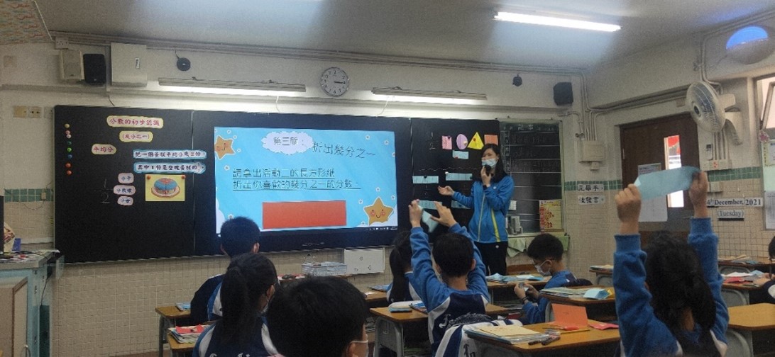 數學學科本學年依次進行評教的課題是由三年級李奕菲老師執教的《分數的初步認識》、四年級林愛儀老師執教的《運算定律——加法結合律》、二年級劉惠嬋老師執教的《平均分》、五年級鍾沛江老師執教的《不規則物體的體積》、六年級梁健生老師執教的《比例尺》和一年級朱月香老師執教的《找規律》。《分數的初步認識》一課,課堂設計從分實物的需求中讓學生充分感知分數產生的意義,教學重點讓學生體驗二分之一,感受二分之一的大小,並且用語言表達二分之一的含義;創設闖關遊戲將課堂教學環節有效連接,學生一邊闖關一邊學習,遊戲內容則是進一步去深度理解幾分之一,藉助塗一塗、比一比、畫一畫等多種操作手段讓學生表示出幾分之一,教學形式活潑,教學手段有效,教學內容生活化,達到了預期的教學效果。