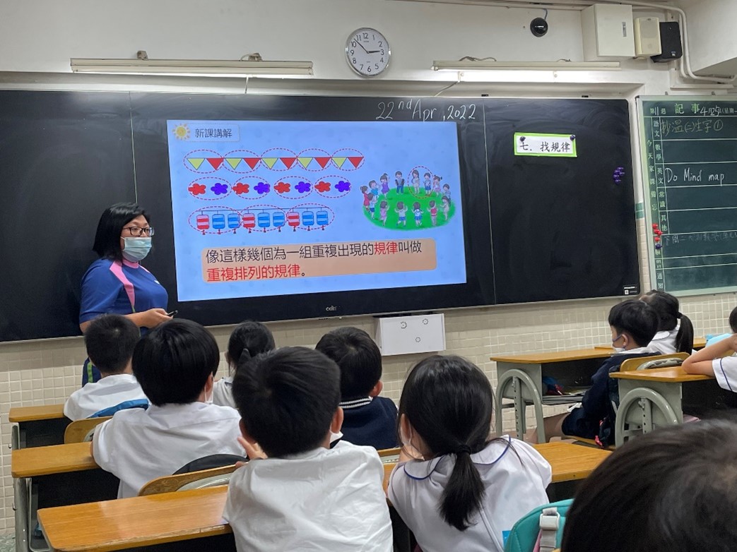 《找規律》這節課教師結合節日情境引導學生進行觀察,發現小旗子,燈籠、小朋友等的排列規律,從而使學生初步感受到有規律排列事物的特徵,教師精心收集了很多生活中有規律的例子,讓學生感知到生活中的數學,只有細心觀察,都能感受到有規律的美好事物;課堂教學過程中教師十分重視學生的動手實踐,提供一些有趣的學具讓學生發現規律、應用規律以及創作規律。