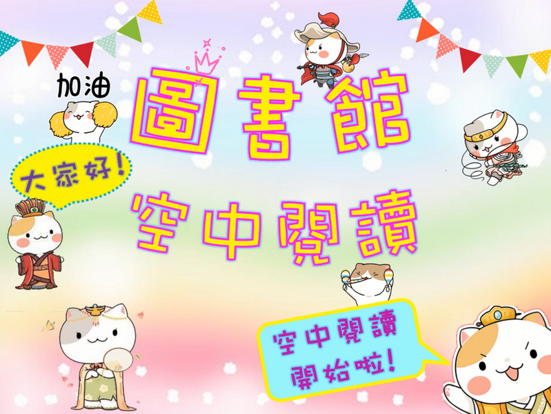 各位老師同學,大家好!”空中閱讀”節目又和大家見面啦!一班圖書館趣BOOKBOOK管理員將會隆重登場!還有閱讀小網紅跟大家宣傳圖書館活動,這次”閱讀拍拍拍”得獎者究竟是誰呢?嘩!節目內容豐富多采,立刻播放以下"空中閱讀”開始啦!
