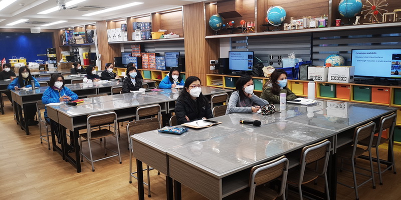 在12月15號下午勞小全體英文老師在本校科普室參加了本學年的線上教學培訓活動;是次活動原計劃是在線下以訪校觀課等形式進行,但是由於疫情原因,毅然把活動轉為線上。 每一學年,英文科老師們為了如何提高孩子們的英文技能而出謀獻策,群策群力。本學年,英文科的總體主目標是提高孩子們的聽說能力,就這目標,老師們設計系列讓孩子們樂於其中的聽說活動,藉此機會,還邀請了來自新西蘭的資深導師Andrew 也是本校英文教材的主編之一,為英文老師們開設了線上的關於如何上好聽說課的教學培訓。