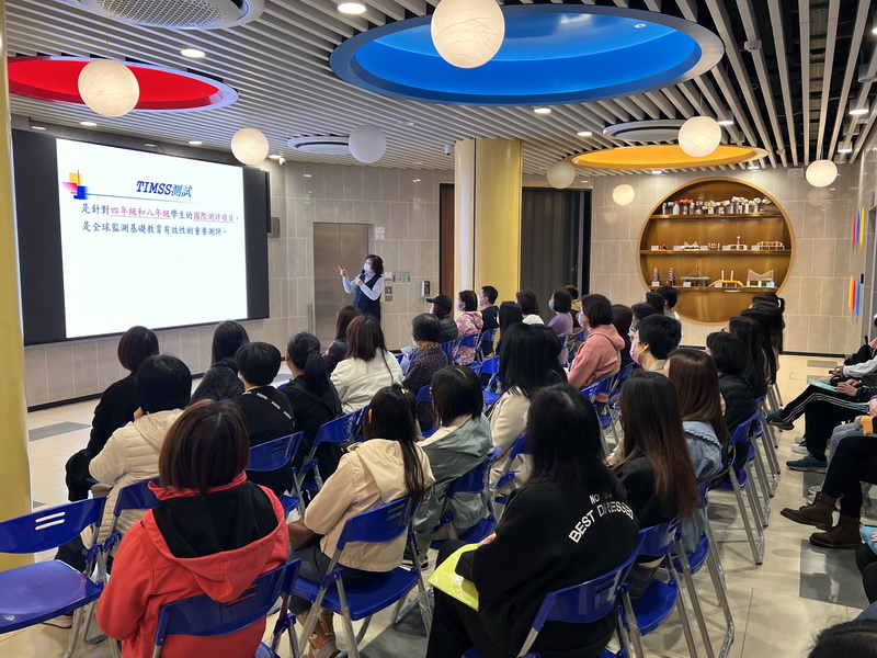 家長接待日當天,邵朝霞副校長與四年級家長進行了TIMSS相關講座,本次講座的目標是希望家長知悉本校將對四年級學生進行TIMSS測試,其目的是為了提高學生在科學及數學方面的能力,而非用來評估個別學生、老師、家長的表現,為了解四年級學生學習數學及科學知識以及應用能力的程度,以便學校及澳門教育部門可以在測試結果中反映的問題,進行有效分析,更好地促進課程改革和教育政策改進。