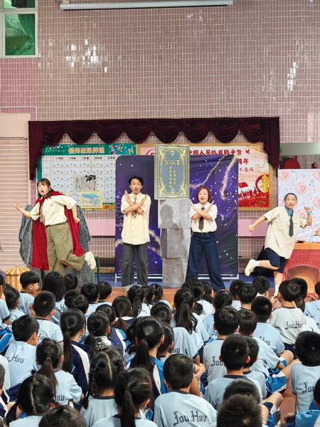 演出間歇的互動環節同樣精彩,演員以「情景提問」形式考驗學生應對能力,「遇到陌生人強行牽手要怎麼做?」等問題引發踴躍搶答,現場歡聲笑語不斷。