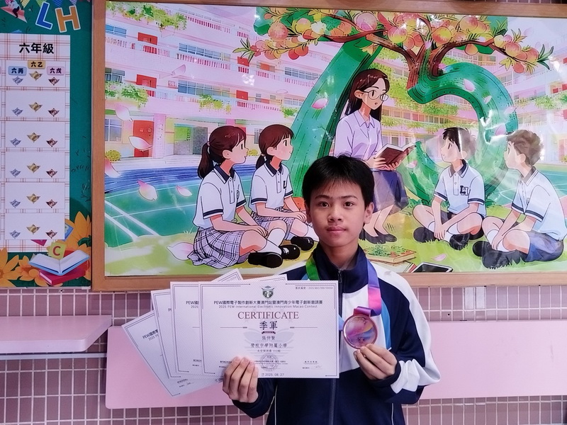 由澳門創芯科技協會及澳門科學館聯合主辦的「2025 PEW國際電子創新大賽」已圓滿落幕。本屆賽事吸引眾多學子同場競技,我校學生憑藉紮實的知識基礎與出色的表現,在個人及團體項目中全面開花,共計斬獲一等獎4項、二等獎6項、三等獎7項、季軍2項及參與獎2項,成績斐然,彰顯了學校在STEM教育領域的深厚底蘊與卓越成果。