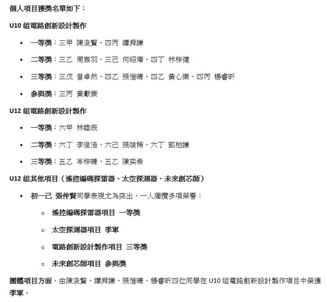 此次大賽的優異戰績,是我校積極拓展學生科技視野、激發創新潛能、鼓勵跨學科實踐的集中體現。我們向所有獲獎同學表示最熱烈的祝賀,並對各位指導老師的悉心栽培及家長們的鼎力支持致以誠摯謝意。期待我校學子未來能在更廣闊的科技舞台上持續探索,勇攀高峰。